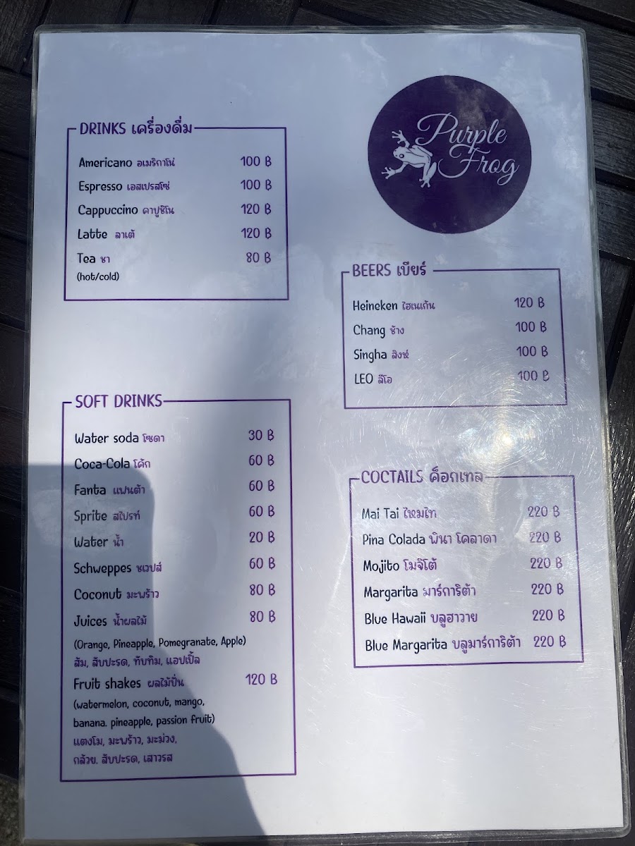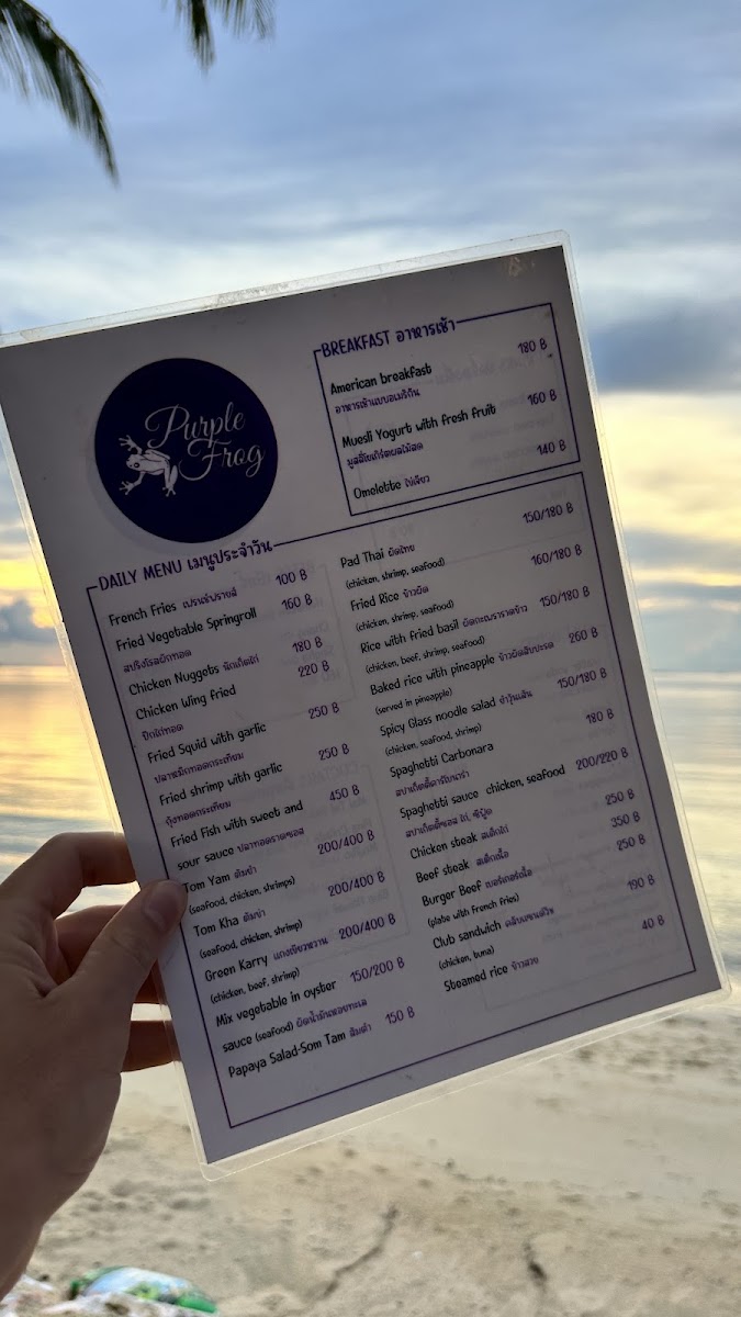 Purple frog Menu